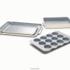 Kimyonun toksik kimyasallar içermeyen 5 parçalı seramik kaplamalı pişirme kabı seti ile tanışın. Bu sette 2 adet fırın tepsisi, bir muffin tepsisi, dikdörtgen tepsi ve dolap düzenleyicileri bulunur.