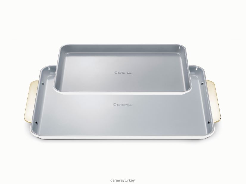 Her mutfak için temel pişirme malzemeleri, 18×13″ büyük ve 15×10″ orta boy fırın tepsilerimizin fırına hazır kombinasyonu olan fırın tepsisi ikilisiyle tanışın. Doğal olarak kaygan, toksik olmayan seramik kaplı bir iç yüzeye sahip olan bu tabakalar, sağlıklı pişirmeyi (ve temizlemeyi) her zamankinden daha kolay hale getiriyor.