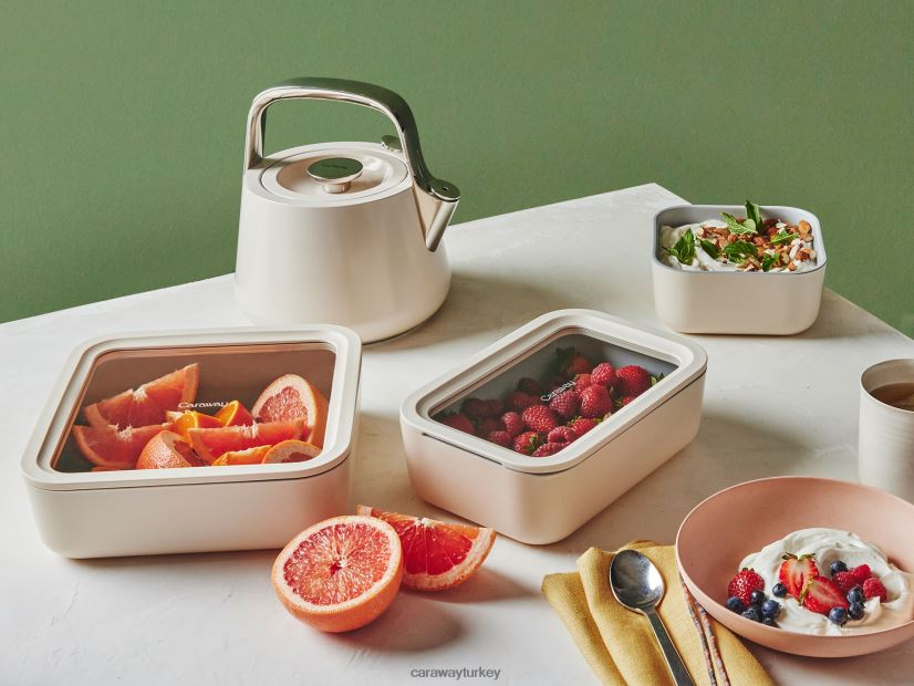 Yiyeceklerinizi taze (ve kokuları dışarıda) tutmak için hava tahliye teknolojisiyle üretilen büyük yiyecek saklama kabımız, yarının öğle yemeği veya dünden kalanlar için yeni evinizdir. Toksik olmayan, yapışmaz, seramik kaplı cam içeren bu dayanıklı kap, hazırlamayı, saklamayı ve servis yapmayı her zamankinden daha kolay hale getiriyor. Hareket halindeyken yemeklerinizi ekstra sıkı bir şekilde saklamak için ücretsiz saklama askısı dahildir.
