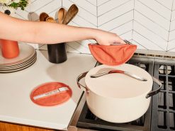 Seramik Hollandalı fırın tenceremiz (kapak dahil) mutfakta zararlı kimyasallar olmadan sağlıklı yemek pişirmeye olanak tanır: güveç, ekmek pişirme ve daha fazlası için kullanın. Toksik olmayan seramik kaplamalı bir iç yüzeye sahip olan bu dayanıklı yapışmaz tencere, yemek pişirmeyi her zamankinden daha kolay hale getiriyor, temizliği (demeye cesaret edelim) keyifli hale getiriyor ve her eve bir renk tonu katıyor.
