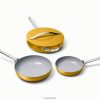 4 parçalı seramik kaplı tava üçlümüz, mutfakta zararlı kimyasallar olmadan sağlıklı yemek pişirmeye olanak tanır: tavadan çıkan yumurtalar, sebzeleri sotelemek ve daha fazlası için kullanın. Toksik olmayan seramik kaplamalı bir iç mekana sahip olan bu üçlü, yemek yapmayı her zamankinden daha kolay hale getiriyor, temizliği (bunu söylemeye cesaret edebiliriz) keyifli hale getiriyor ve her eve bir renk tonu katıyor.