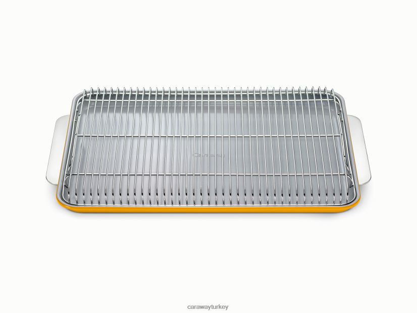 Tüm pişirme ihtiyaçlarınız için büyük fırın tepsisi ve soğutma rafı ikilimiz, mutfaktaki hayatınızı çok daha kolaylaştırmak için tasarlandı. 18×13″ büyük fırın tepsisi, toksik olmayan, doğal olarak kaygan bir seramik yüzeye sahiptir ve 18×13″ paslanmaz çelik soğutma rafının içine yerleştirilmesi için mükemmel boyuttadır.
