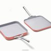 Temiz pişirme, kare tava ikilimiz ile dengeleniyor. Bu ikili, barbeküleri iç mekana getirmek ve sebzelere, etlere ve paninilere ızgara çizgileri eklemek için ideal olan kare ızgara tavamızı ve burgerleri, yumurtaları, krepleri ve aradaki her şeyi çevirmek için ideal olan kare ızgara tavamızı içerir. Kimyonun klasik kızartma tavasına kıyasla neredeyse iki kat daha fazla pişirme alanına sahip olan hem kare ızgara hem de ızgara tavaları, kolay pişirme ve temizlik için imza niteliğindeki yapışmaz kaplamamızı içeriyor.